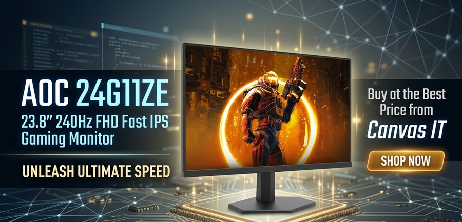 Canvas IT offers you the AOC 24G11ZE 23.8" 240Hz FHD Fast IPS Gaming Monitor at a low price in Bangladesh 04/17/2026. The latest price of AOC 24G11ZE 23.8" 240Hz FHD Fast IPS Gaming Monitor is 17,990৳